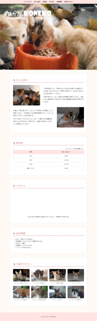 サブドメインなしのURLに「/フォルダ名/ファイル名」を入力すると、アップロードしたサイトが表示される。サイト完成!