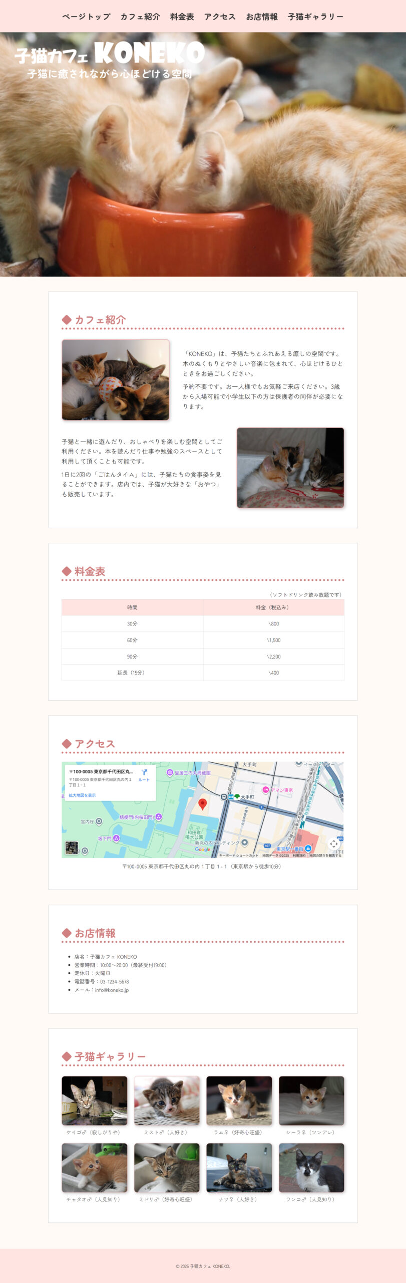 ターゲット:20~40代女性、お子様がいらっしゃるご家族、10代後半の若いカップル、猫好きの方