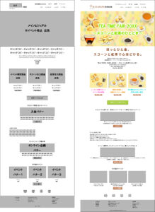 百貨店催事、スコーン&紅茶イベントの特設サイトのワイヤーフレームを作成した。 コンテンツ部分が960px、外側部分を入れて幅1280pxでワイヤーフレームを作成。※Webの解像度は一律72ppi。 Webサイズ本文の文字 […]